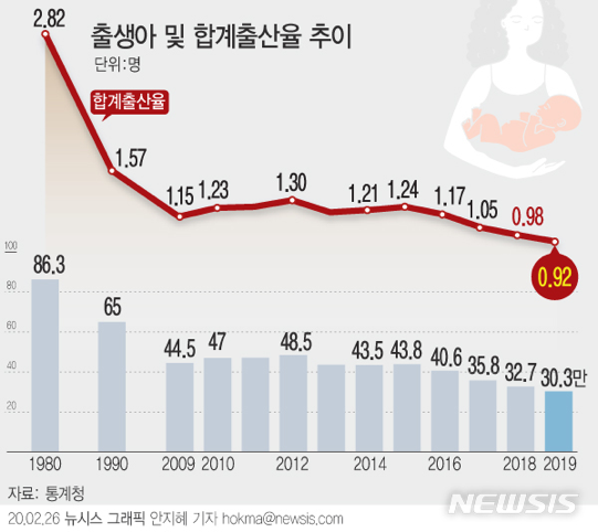 [세종=뉴시스] 장서우 기자 = 전 세계에서 유례없는 속도로 저출산·고령화를 겪고 있는 우리나라에서 지난해 태어난 아이의 수가 간신히 30만 명을 넘겼다